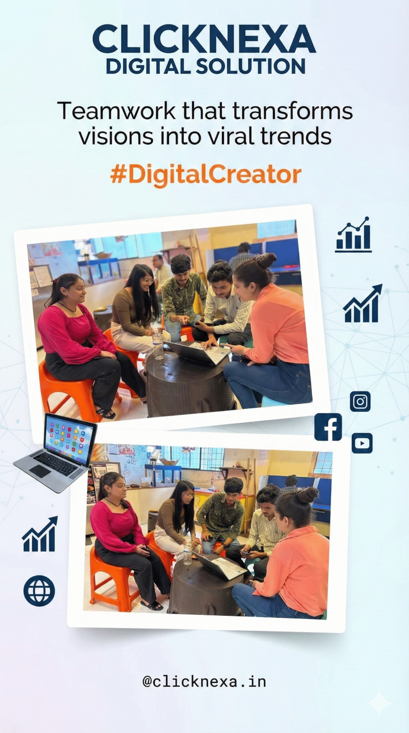 At Click Nexa, we believe that design is more than just visuals—it’s about creating experiences that drive real business results. Our team blends creativity with cutting-edge technology to deliver websites, apps, and campaigns that don’t just look good, but perform exceptionally.